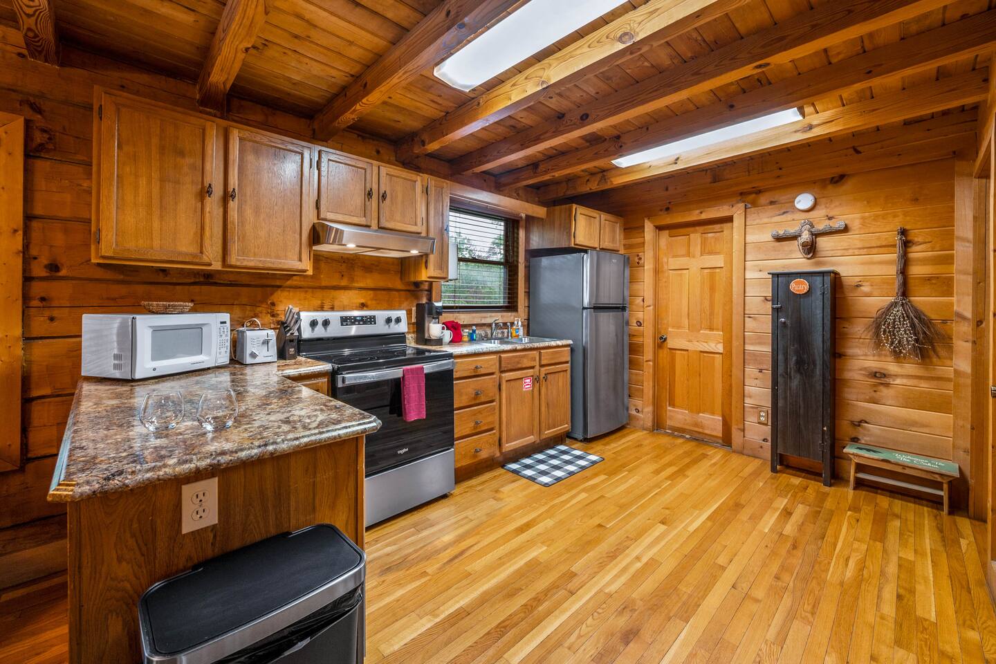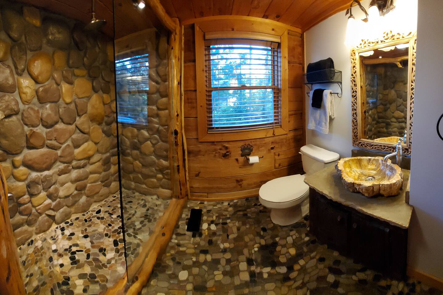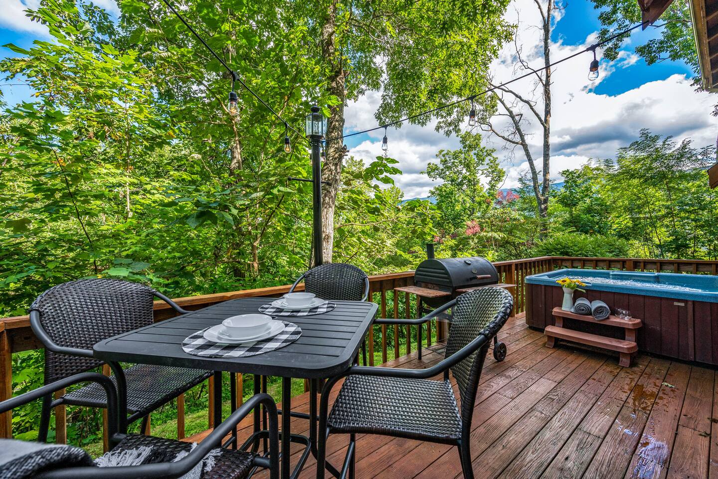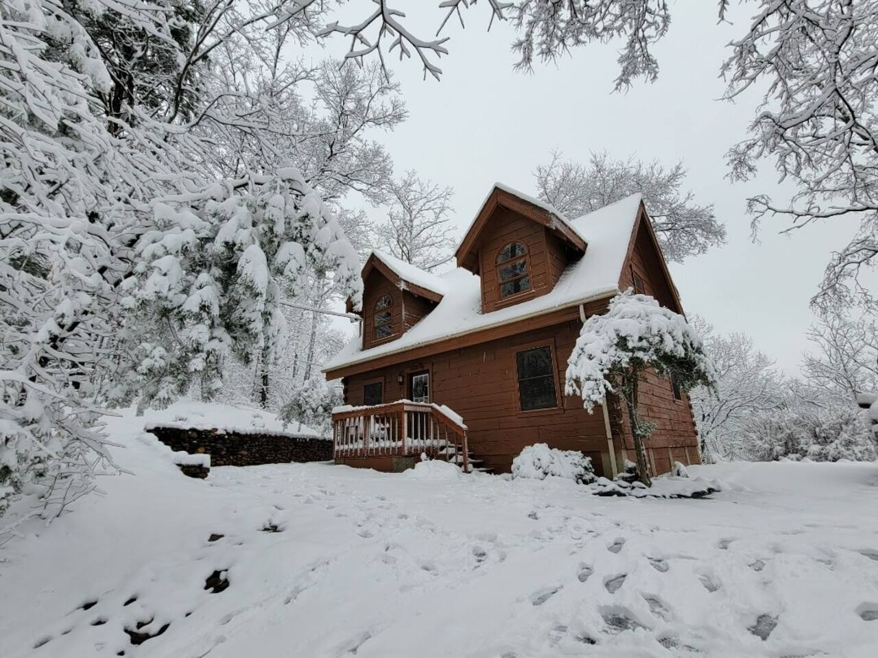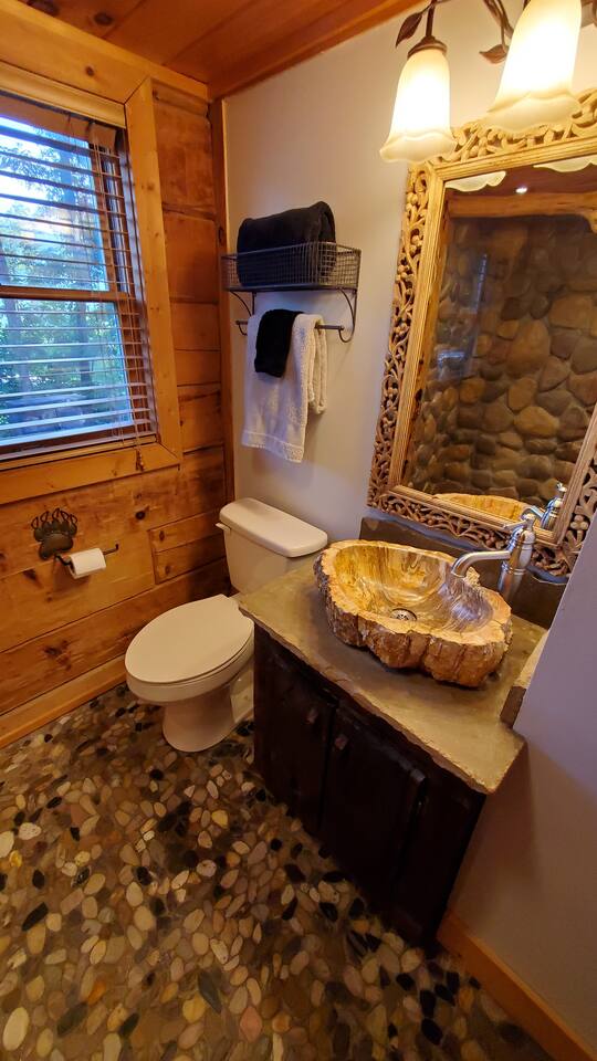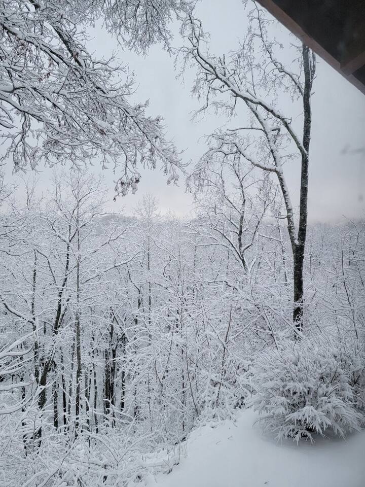 Welcome to "Moonlight Ridge", a unique real log cabin with indoor and outdoor wood fireplaces! Enjoy the mountain views from the hot tub or soak in the jacuzzi tub. This beautiful mountain retreat sleeps up to 6 (King bed on the main floor, Queen bed in the open loft, and Queen sleeper sofa)! Soaring ceilings and plenty of natural light will make you feel right at home while you relax by a crackling fire inside or outside. Enjoy seclusion in nature but also quick access to downtown Gatlinburg, Pigeon Forge, and Great Smoky Mountain National Park! As soon as you walk into the front door you are greeted by the natural warmth of the all wood interior and the abundance of natural light spilling through the windows. Relax on the couch or take in the view of the mountains from the private deck. Cook up a delicious feast in the updated kitchen or on the charcoal grill. Take a dip in the hot tub on the deck or soak in the jacuzzi tub and warm up by one or both of the real wood burning fireplaces; a rarity these days! This cabin is private enough to enjoy peace and quiet, see the stars, and the moon, but close enough to get to your favorite attractions quickly. For Pickleball lovers there are two community use courts with equipment rental available at the security office. During the hot summer months enjoy the three included community pools, including the newest salt water heated pool right around the corner, to cool off after a day of fun! (seasonal availability Memorial Day to Labor Day) Gatlinburg, Pigeon Forge, The Arts and Crafts District, and the Great Smoky Mountains National Park are all within 15 to 30 minute scenic drives. There are also plenty of places to eat, drink, and shop at along the way! Charcoal and firewood are not provided but there are plenty of local vendors nearby. Life happens and we highly recommend purchasing travel insurance in case you would need to cancel your trip outside of the free cancelation window. The booking platform offers travel insurance at checkout or you are welcome to choose your own! This cabin is located in the mountains. There are somewhat steep roads to access the property but any vehicle should be able to drive them without issue. In the event of winter weather, four wheel drive or all wheel drive is required. Occasionally weather and other natural events will limit access to and from the cabin, interrupt power, internet, cable TV, or other services outside of our control. These occurrences are not cause for a refund. The hosts are not on site but are available via messaging through the platform from 9AM to 6PM Eastern Standard time or 24 hours if an emergency arises. There is one security camera facing the front of the house and driveway. .