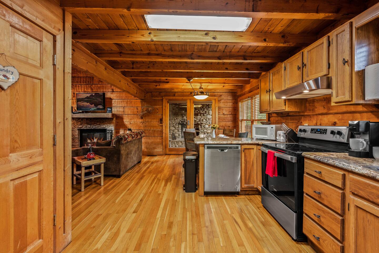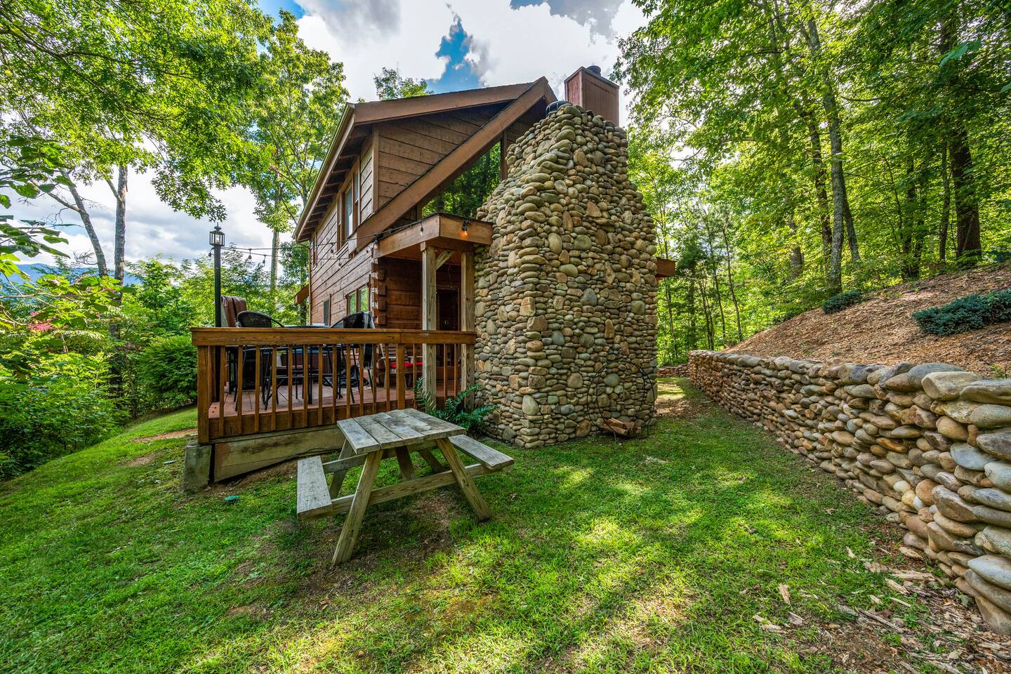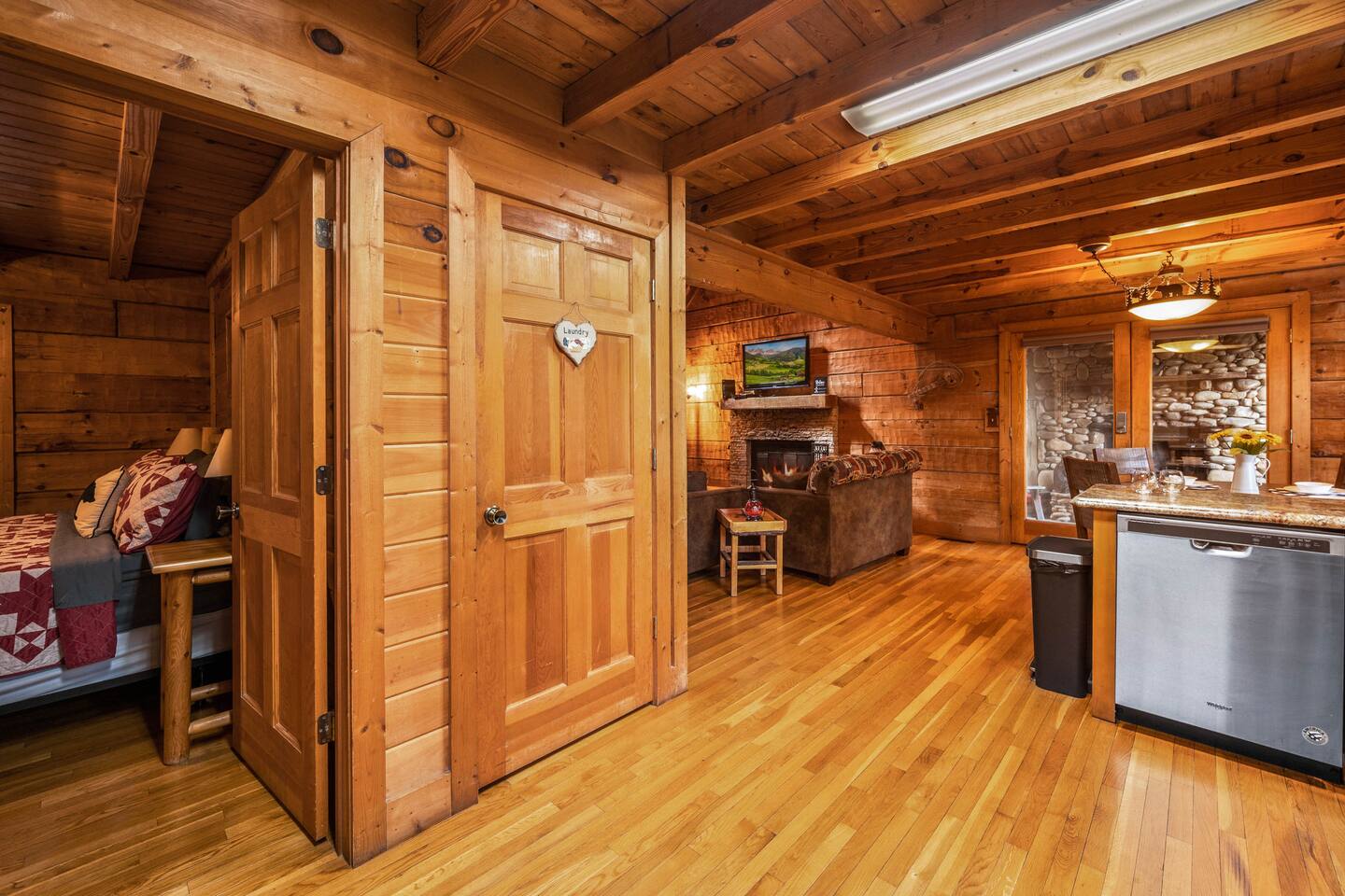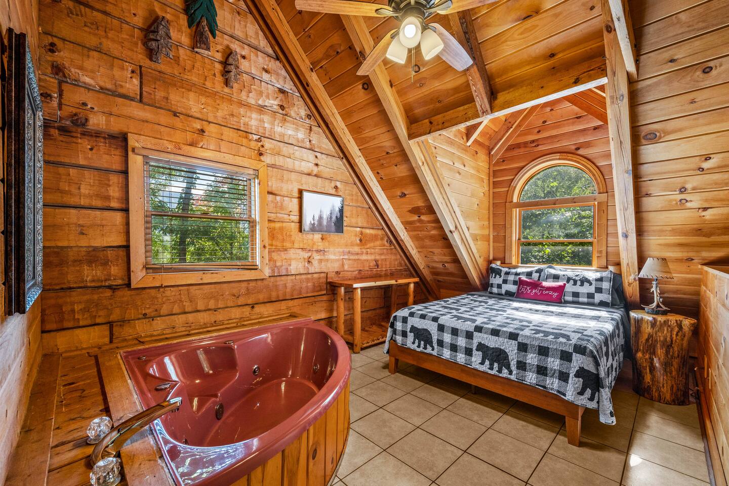 ✔Real log Cabin tucked into the mountains! ✔King bed on first floor! ✔Queen bed in airy loft with exposed beam cathedral ceilings! ✔Covered outdoor wood burning stone fireplace ✔Hot tub with mountain views as well as indoor Jacuzzi! ✔Pool table! ✔Indoor wood burning fireplace! ✔High speed cable internet ✔YouTube TV and Roku TVs for streaming! ✔3 community pools ✔Community Pickleball court! ✔13 miles to Gatlinburg/19 miles to Pigeon Forge