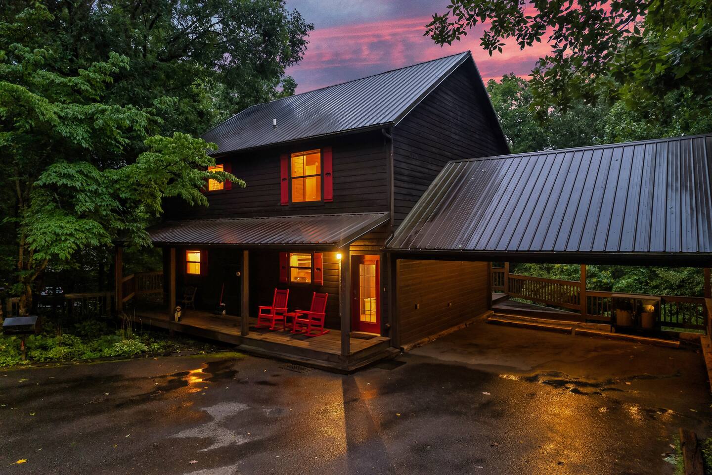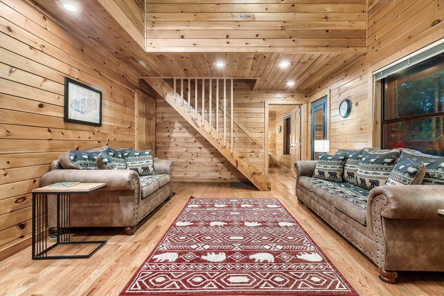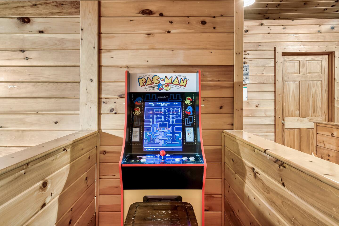 Privately tucked in the forest, Whispering Woods is your perfect treetop get away from the daily hustle! Whispering Woods is secluded but close to everything and offers all of the convenience and luxury for you to enjoy on your Great Smoky Mountains vacation. Gatlinburg, Pigeon Forge, Dollywood, The Arts and Crafts District, and The Great Smokey Mountains National Park are all within about 10 miles of the cabin! When you arrive at Whispering Woods the first thing that you'll notice is the ample, covered, and LEVEL parking! Take in the scenery from the wrap around porch and challenge your group to a game of cornhole! (Boards located in the laundry room) Upon entering into the fully equipped kitchen you'll notice the granite counter tops and that everything you'll need to whip up a delicious meal is easily within reach! If grilling is your thing, a charcoal grill awaits the chef outside. (Charcoal and lighter fluid not provided) The family room has soaring, two story ceilings with a floor to ceiling stone electric fireplace to warm up beside on cool days. Roku TVs are provided for you to stream your favorite channels and shows that you are subscribed to as well as YouTube TV for all of your favorite channels. Enjoy the updated furnishings including the pull out queen sofa bed to sleep up to six of your closest family and friends. The first floor bedroom features a king sized memory foam mattress, TV, and an attached full bathroom. Enjoy the standing rain shower or a relaxing soak in the jetted tub. Upstairs you'll find the second bedroom complete with a queen sized memory foam mattress, TV, cathedral ceilings, and second attached full bath. This bathroom features a tub shower combo with a massaging shower head and is also accessible from the game room! At the top of the stairs is where the fun begins! Rack up a game of pool or test your skill at the classic arcade game! The Pac Man arcade has 12 classic games including Pac Man, Galactica, Super Pac Man, Dig Doug, and more! Step out onto the upstairs deck and you'll feel like you're in the treetops! You can sit on the swing and enjoy the view or tune the world out with a dip in the private hot tub! Although you may not want to leave your wooded oasis, be sure to take in all that the smokies has to offer! You are just minutes away from Gatlinburg, Pigeon Forge, Dollywood, The Arts and Crafts District, and of course Great Smokey Mountain National Park, the most visited national park in the United States! We highly recommend purchasing travel insurance in case you would need to cancel your trip outside of the free cancelation window. The booking platform offers travel insurance at checkout or you are welcome to choose your own! This cabin is located in the mountains. There are somewhat steep roads to access the property but any vehicle should be able to drive them without issue. In the event of winter weather, four wheel drive or all wheel drive is required. Occasionally weather and other natural events will limit access to and from the cabin, interrupt power, internet, cable TV, or other services outside of our control. These occurrences are not cause for a refund. Bring your furry friend along on your trip to the Smokies at Whispering Woods! The cabin is dog friendly as long as these rules are followed: 1) Only dogs are allowed, max of 2, up to 80 pounds each. 2) $100 pet fee per stay 3) Dogs must be housebroken and well behaved. 4) Dogs must be supervised at all times and crated if they are left alone in the cabin. 5)The yard is not fenced and dogs must be kept on a leash while outdoors. 6) Guests are responsible for the pickup and disposal of any pet waste indoors and outdoors. 7) Any excessive cleaning and/or damage to the cabin or furniture may result in additional charges. The hosts are not on site but are available via messaging through the platform from 9AM to 6PM Eastern Standard time or 24 hours if an emergency arises. There is one security camera facing the front of the house and driveway.