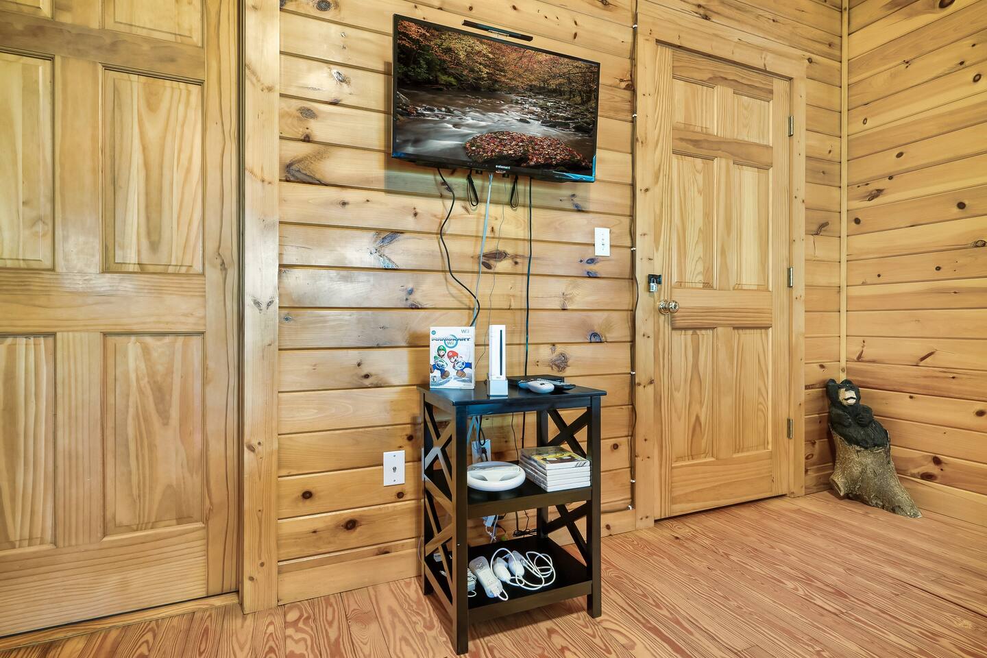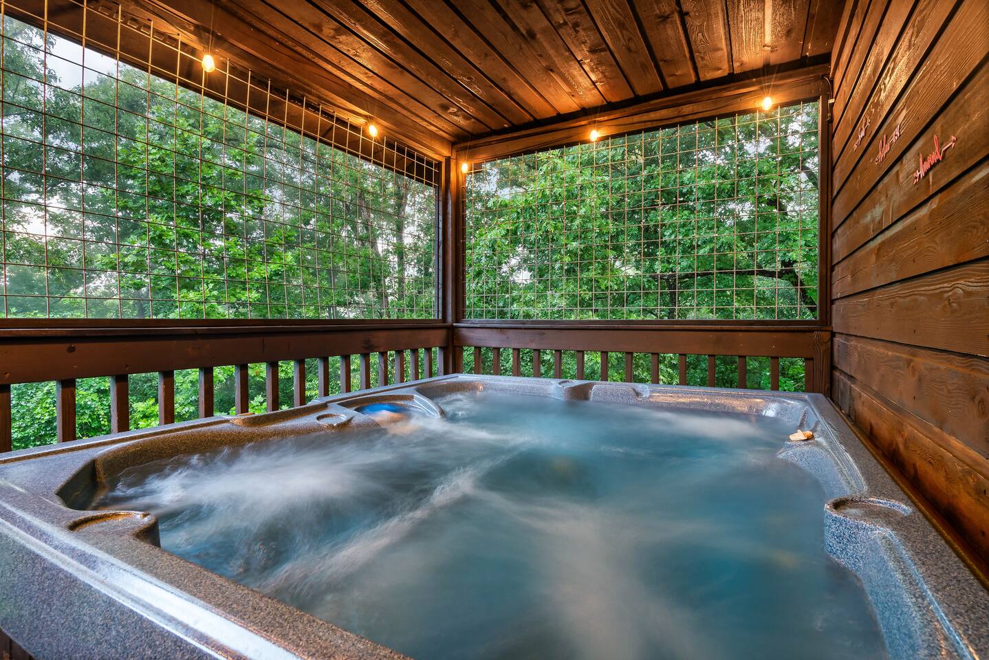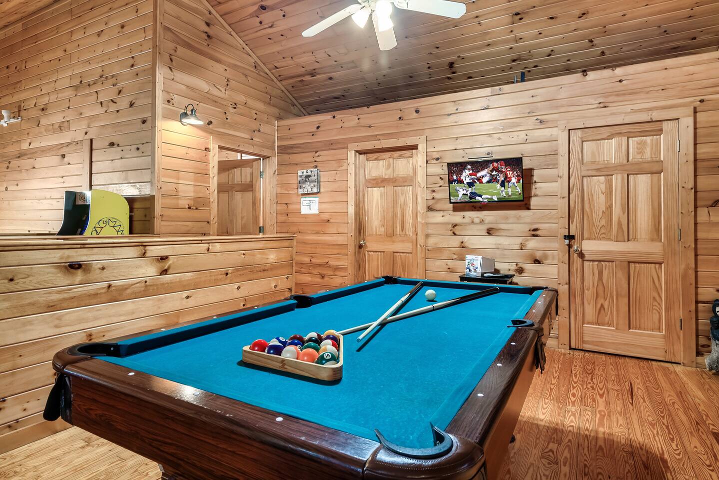 ✔Dog Friendly! (Max 2, 80lbs each, $100 pet fee) ✔Secluded cabin tucked into the trees! ✔King bed 1st floor suite with whirlpool tub! ✔Private and secure second floor hot tub! ✔YouTube TV and Roku TVs for streaming! ✔Level, covered parking for 2 or more vehicles! ✔Easy to use, realistic electric fireplace! ✔Game room with pool table and stand up arcade game with 12 classic games! ✔Treetop views from double decks! ✔9 miles to Gatlinburg and Pigeon Forge city centers. ✔High speed internet!