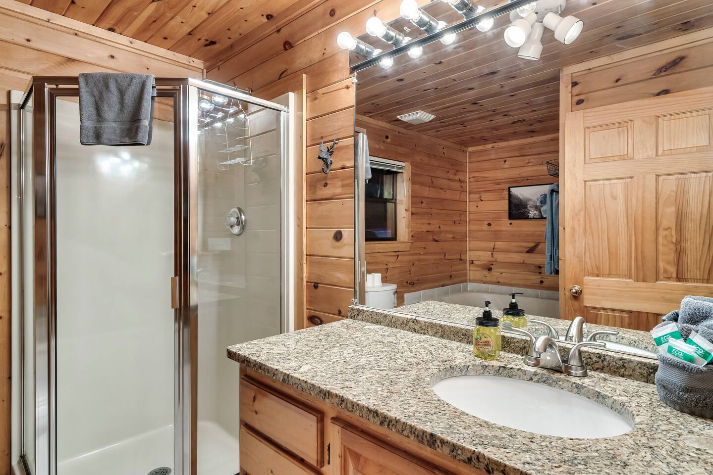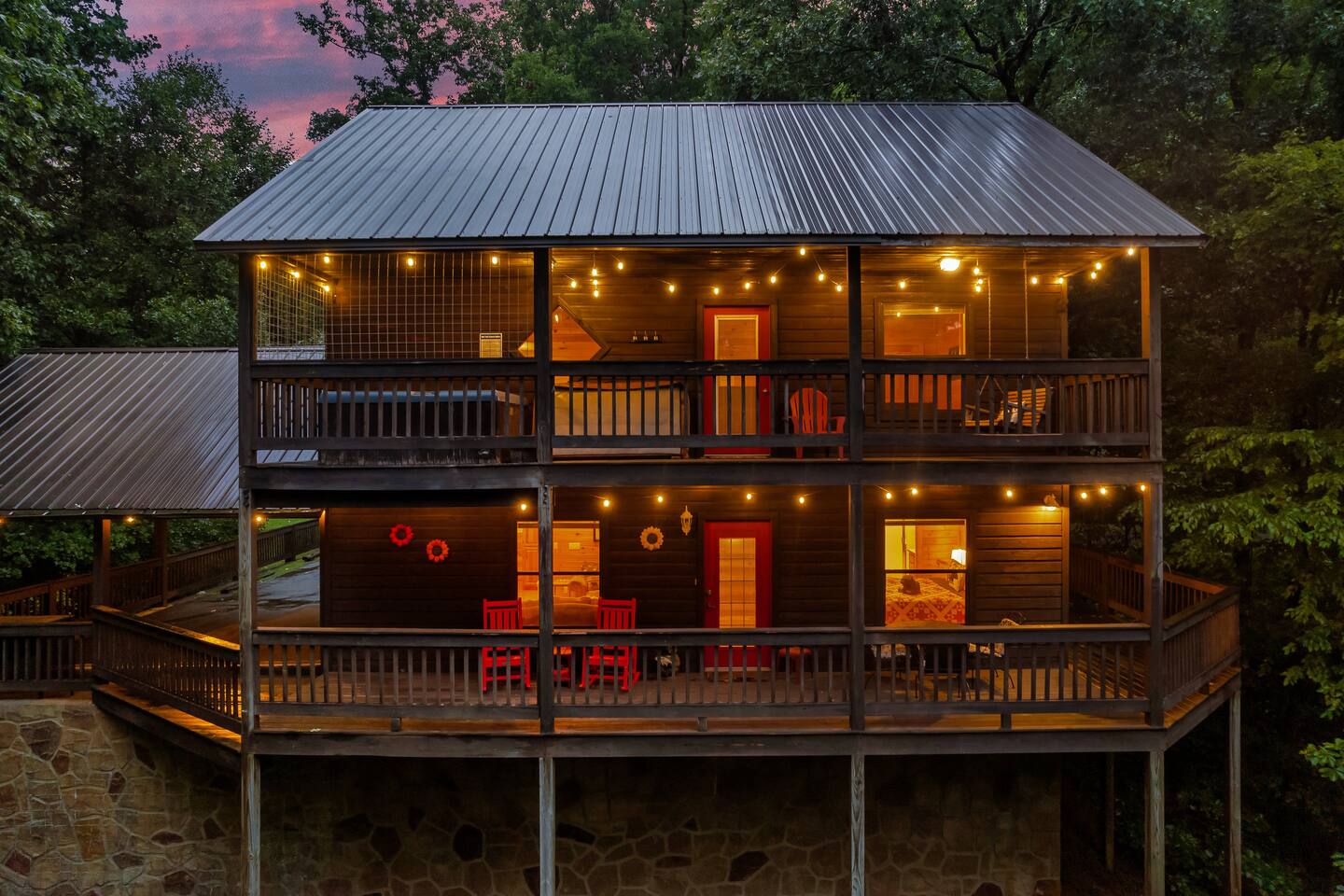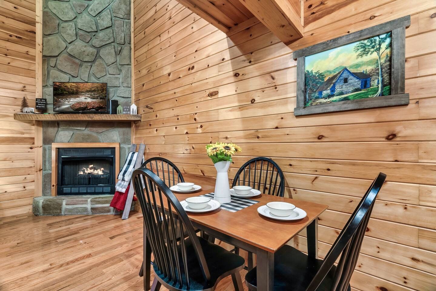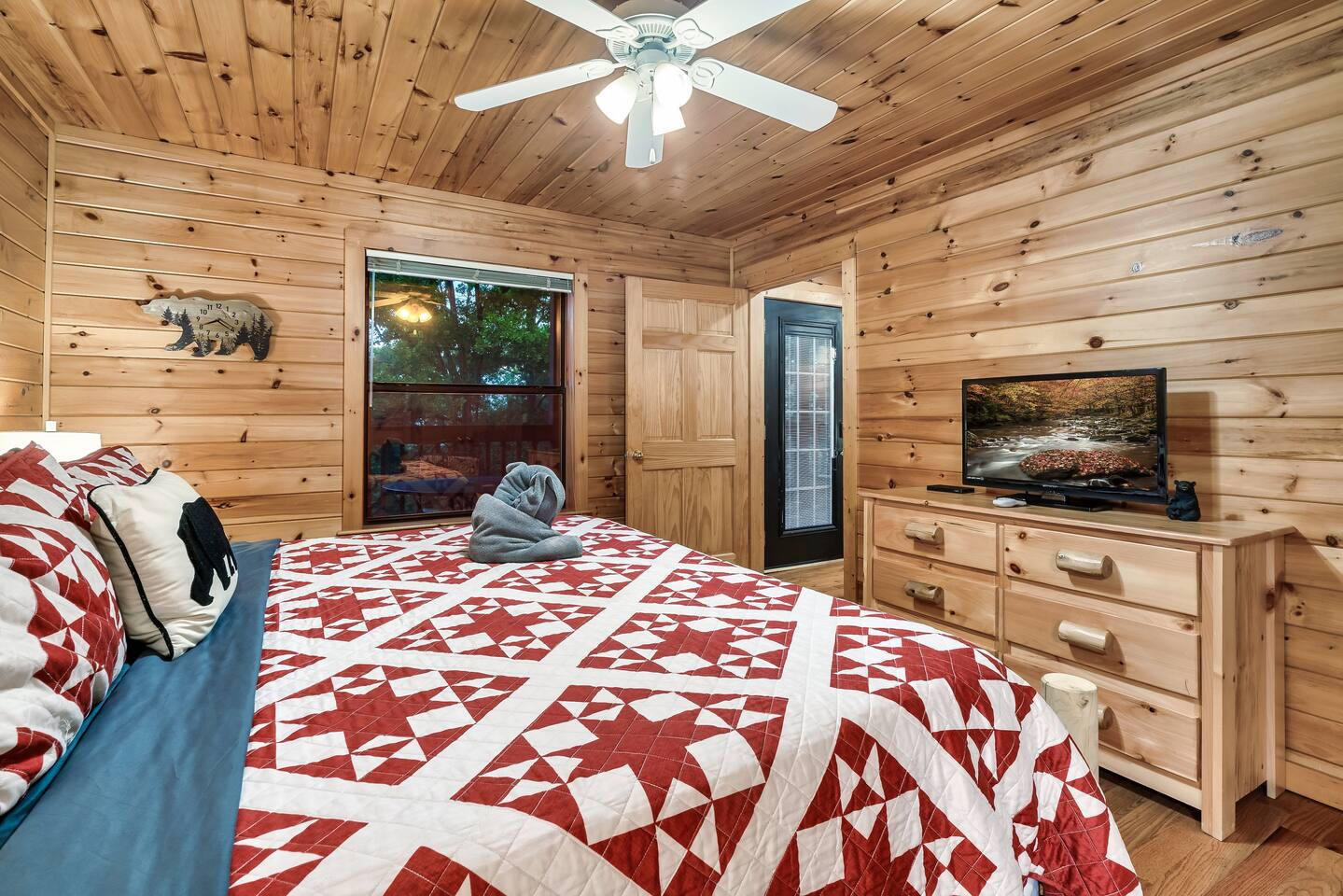 ✔Dog Friendly! (Max 2, 80lbs each, $100 pet fee) ✔Secluded cabin tucked into the trees! ✔King bed 1st floor suite with whirlpool tub! ✔Private and secure second floor hot tub! ✔YouTube TV and Roku TVs for streaming! ✔Level, covered parking for 2 or more vehicles! ✔Easy to use, realistic electric fireplace! ✔Game room with pool table and stand up arcade game with 12 classic games! ✔Treetop views from double decks! ✔9 miles to Gatlinburg and Pigeon Forge city centers. ✔High speed internet!